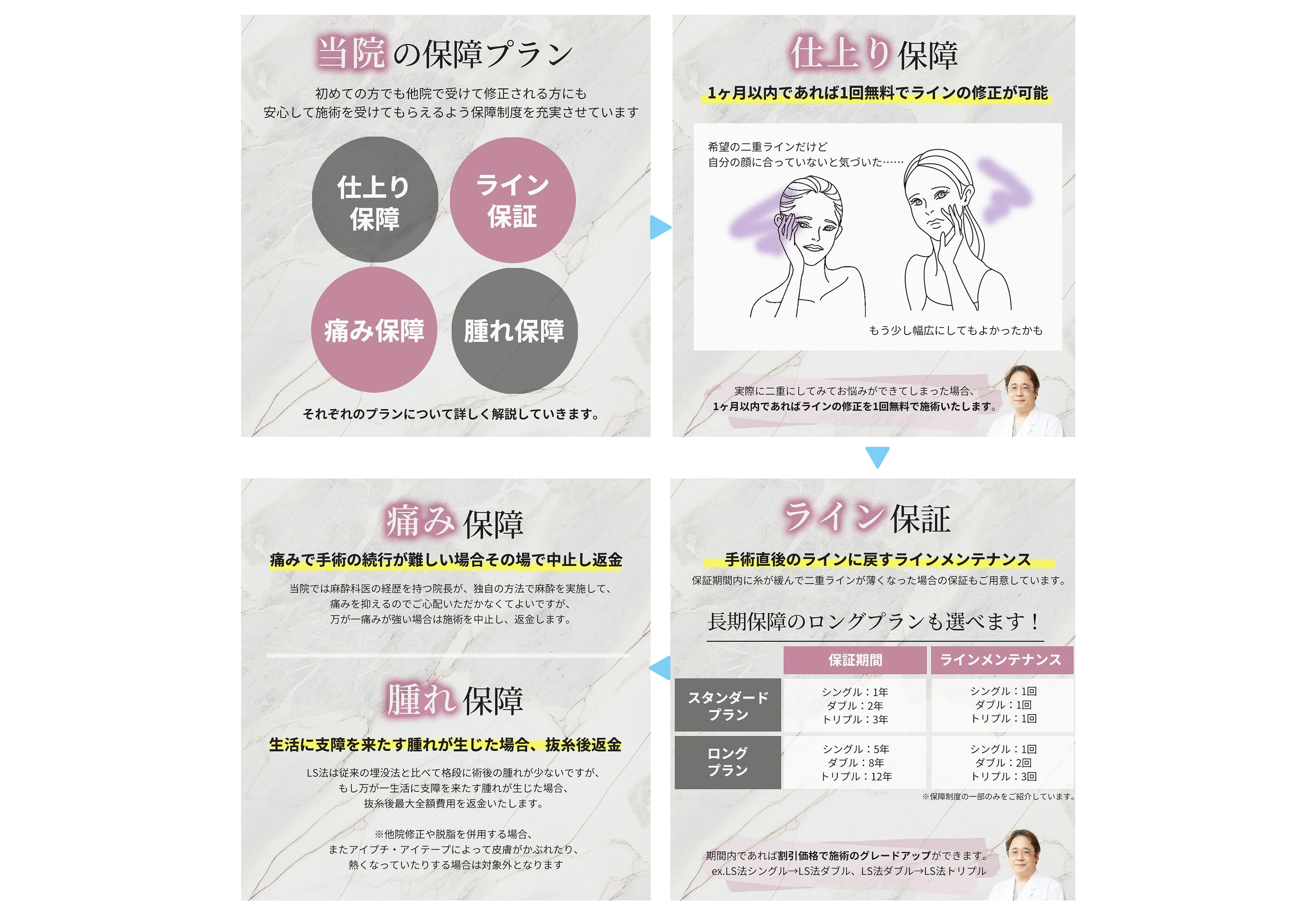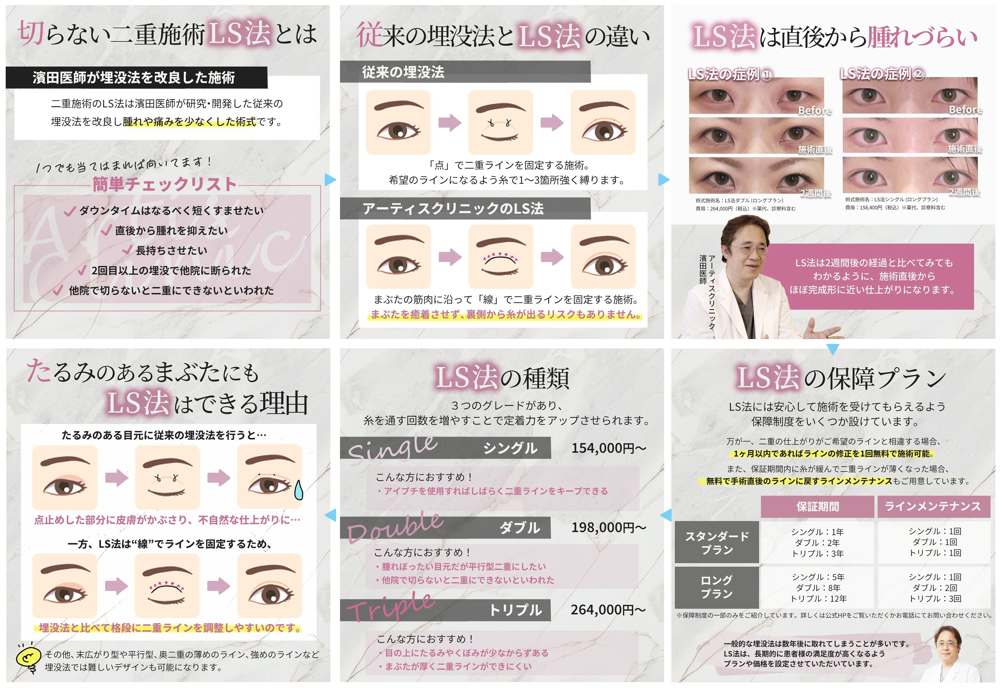 「LS法」は従来行われている埋没法の欠点を、技術と経験で改良を重ねて生まれた新しい切らない二重手術です。